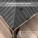 ✔ Smart water drainage system – prevents leaks and directs rainwater away.