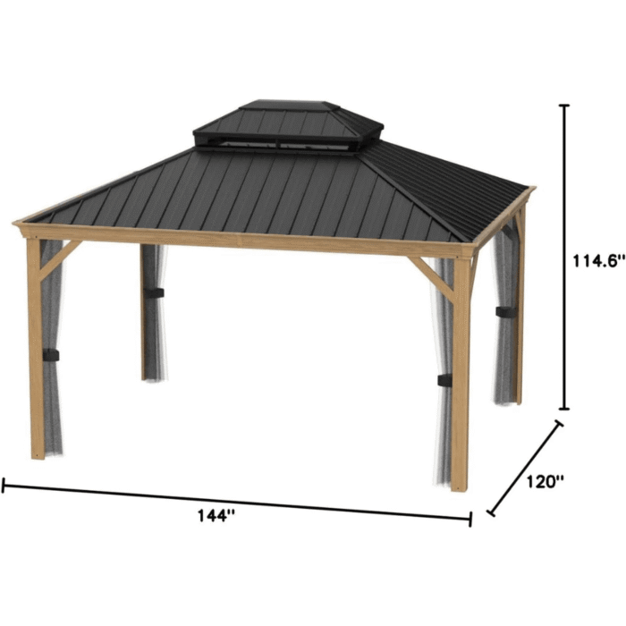 - Dimensions: 10′ x 12′ (144″ L x 120″ W x 114.6″ H)