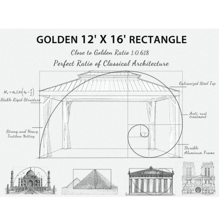 12 ft. X 16 ft. Sunroom Hardtop Gazebo Solarium Galvanized Steel Double Roof Aluminum Screen House Patio Backyard
