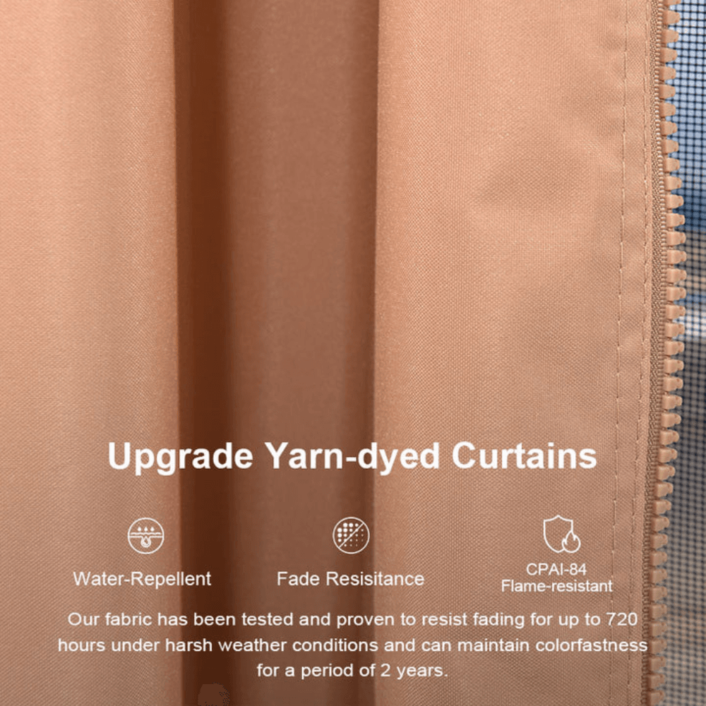 • Fabric: Yarn-dyed polyester (for included curtains & netting)