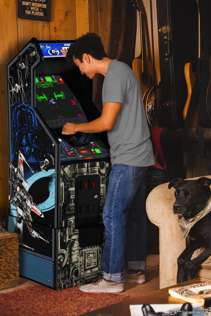 Back by popular demand! The special 40th anniversary edition of The Star Wars™ Home Arcade Game features artwork from the original arcade machine that flows seamlessly from the cabinet to the included riser. The just over 5’ tall machine (with riser) comes with a lit molded coin door, light up marquee, full-color 17” display and dual speakers. These features, combined with the real-feel flight yoke and control buttons allow for endless hours of gaming! The Star Wars™ Home Arcade Game is easy to assemble. (Force Powers not required)